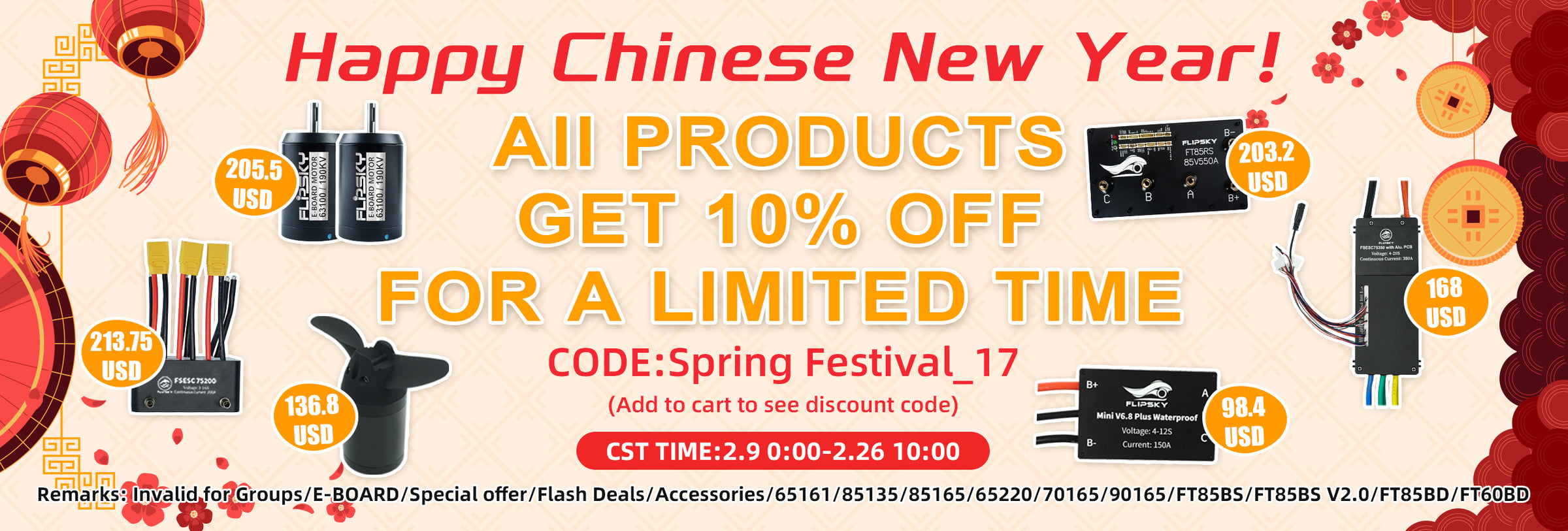 Free shipping for V4, V6, V75 ESCs (except with water cooling series ,75350,75450,except for USA)