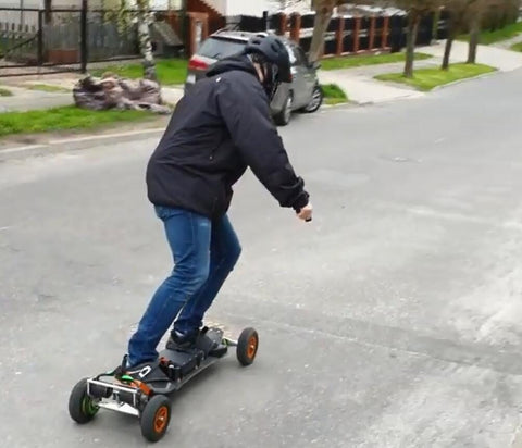 “DIY Trampa board with Flipsky Dual FSESC6.6 Mini, its top speed 60km/h. Torque priority and when I top speed I go feel the thrill.”