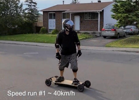 “Built my first belt drive board, got a wrong ESC but works perfectly with FSECS 4.12 now. Ride for the first time,don't know the top speed yet but 26 km/h feels pretty fast on this board.”